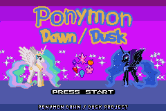 Ponymon Dawn/Dusk Versions are hacked ROMS of Pokemon FireRed/LeafGreen. They were created by DuskShine and uploaded to FunnyJunk onto his page. The project was taken over by chaosfission due to Dusk being AWOL for about a month; however it was then passed down to flutteryay! Who then passed the torch over to Cobalt, who was being helped by Michael Scratch. The game was then passed down to Computerstickman who released 4.0.